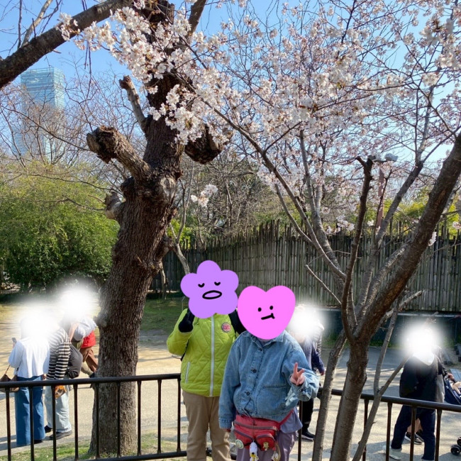 当日はお天気も良く、動物園の中には桜がとても綺麗に咲いていました。春を感じながらの散策で、みなさん自然と笑顔に😊