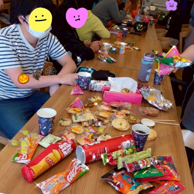 みんなでお菓子を食べたり